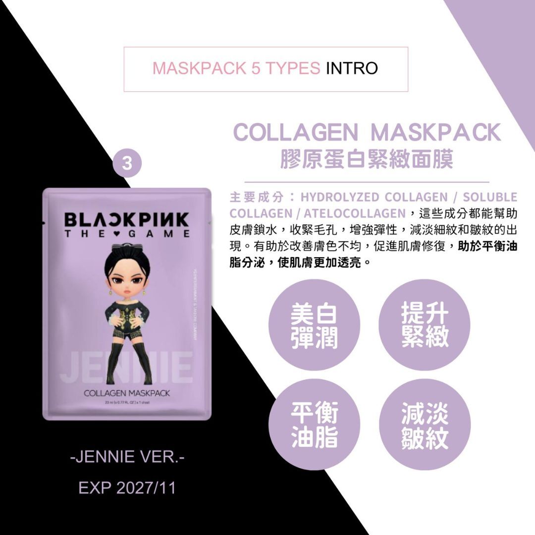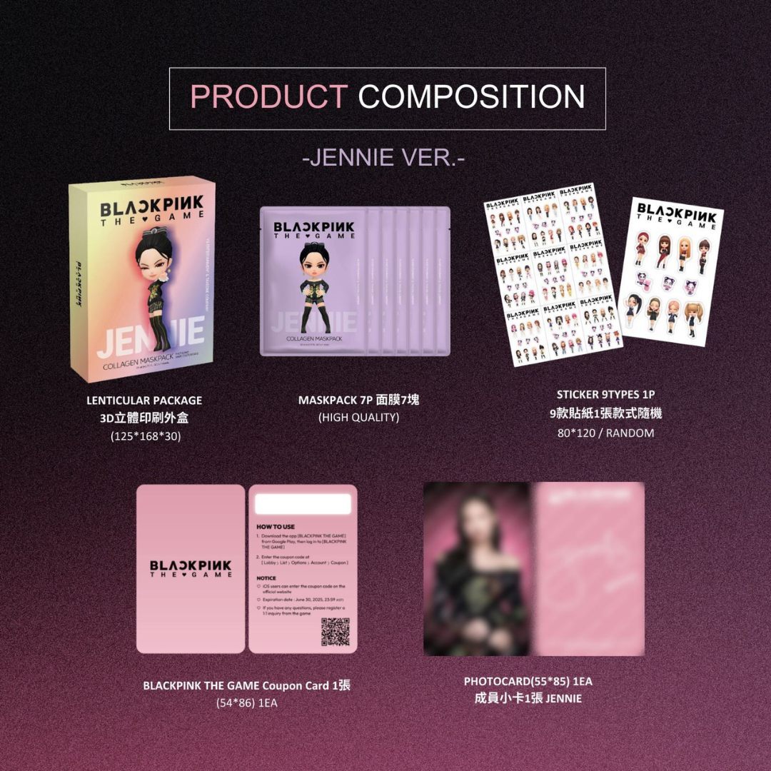 Each box contains MASKPACK 7P, PHOTOCARD 1P, STICKER 9TYPES 1P(RANDOM), and BLACKPINK THE GAME COUPON CARD 1P(Worth KRW$10,000)