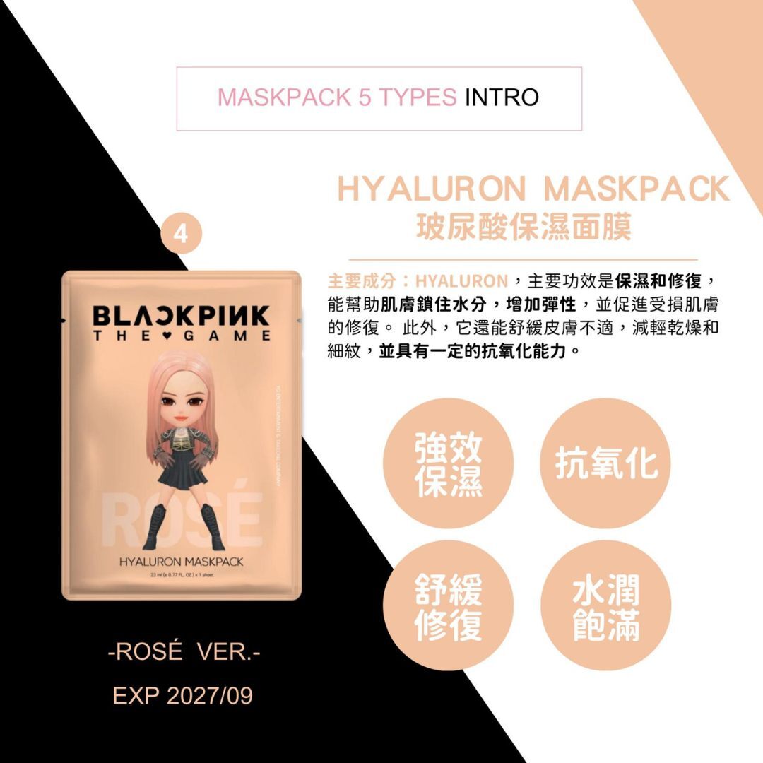 Each box contains MASKPACK 7P, ROSE PHOTOCARD 1P, STICKER 9TYPES 1P(RANDOM), and BLACKPINK THE GAME COUPON CARD 1P(Worth KRW$10,000)